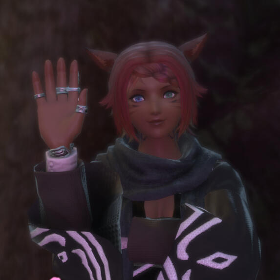 X’sulfo Rhasi is a Seeker of the Sun Miqo’te born out in the Sagolii desert to a Seeker of the Sun mother, and a Keeper of the moon father. Due to an illness she contracted as a small babe, it would lead both her and her parents down a path none of them would return from. Her parents dying to an Ixali ambush searching for a cure, and her to her illness, she would surprisingly be saved by the Elementals in an act of mercy. Being homeless most of her childhood, X’sulfo would adapt by stealing and sticking to the shadows. When the time was right, she had left the twelveswood behind for a new start in Ul’dah, picking up a new trade whilst she travelled; smuggling. It was in Ul’dah that she would have a chance encounter with her now good friend Deianira, and it was through her that she ended in service to Lord and Lady Rokuyari. Being carefree, generally very non-serious, and passionate about her friends, X’sulfo often tries to make sure her comrades are in good spirits even if it comes to a detriment to herself.